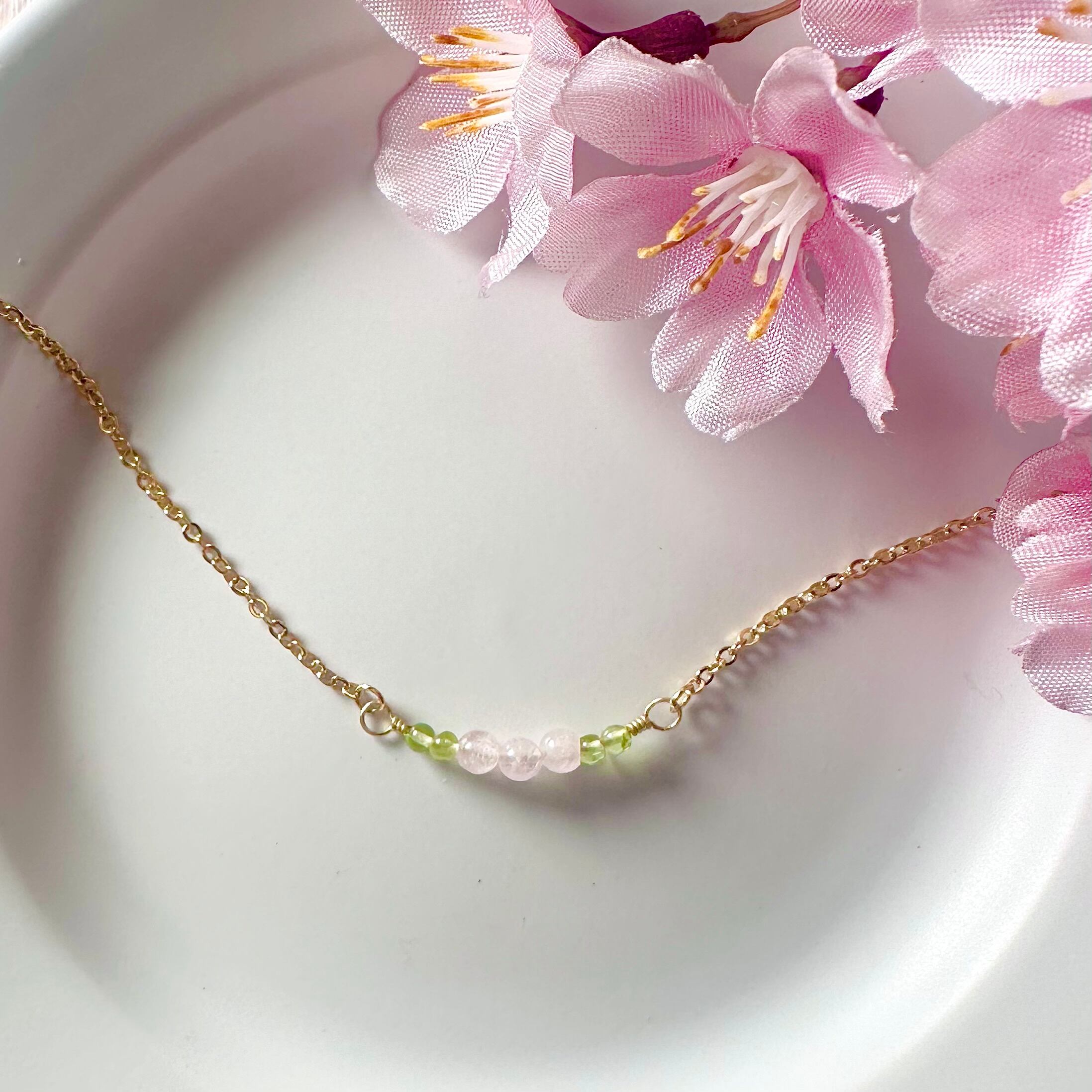 【春色きらめくセット】モルガナイト&ペリドットのネックレス+ローズクォーツ&ペリドットのイヤリング~あなただけの石からのメッセージ付き