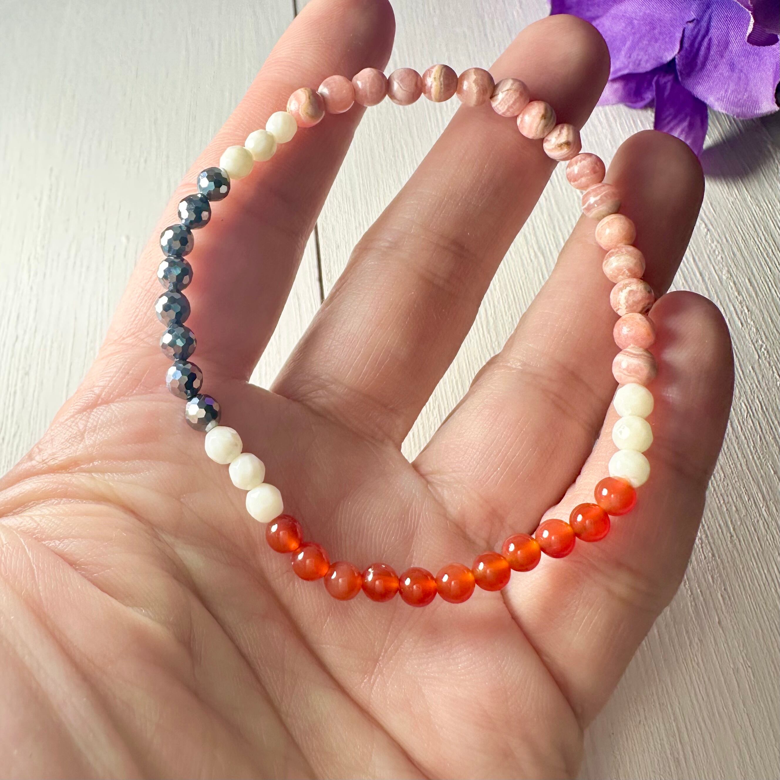 勇気を持って行動したい!情熱と癒し[カーネリアン×インカローズのブレスレット]~石からのメッセージ付き コーラル・テラヘルツ