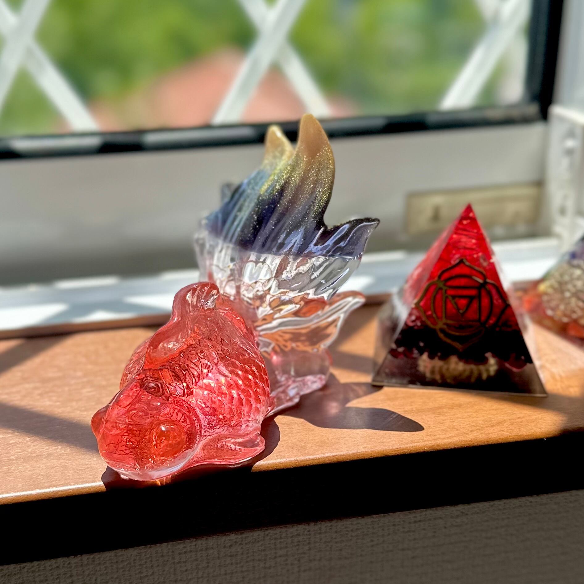 訳アリ【夜の光をまとう金魚】<オルゴナイト>樹脂|一点物『置き物』〜あなただけのメッセージ付き