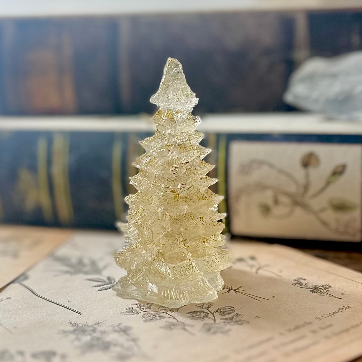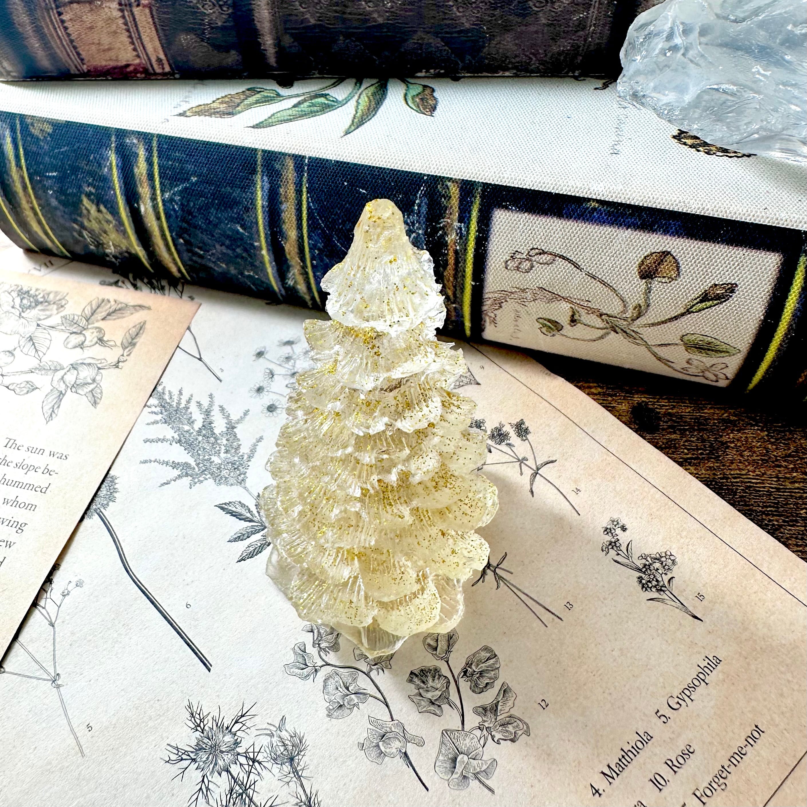 《ミニクリスマスツリー》水晶【もみの木】ゴールドラメ 一点物オルゴナイト・卓上・玄関インテリア~占いメッセージつき