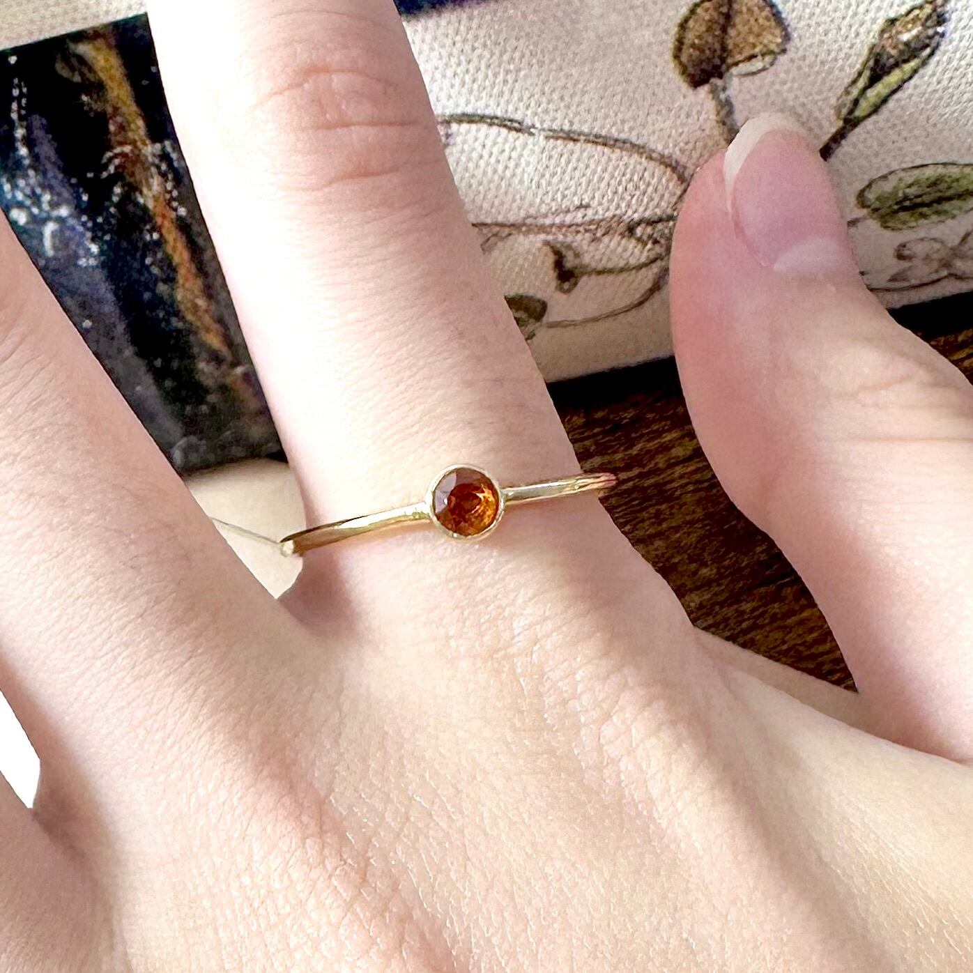 成功を引き寄せる【マデイラシトリン】華奢リング◆宝石質◆小粒◆11月誕生石〜あなただけのメッセージ付き