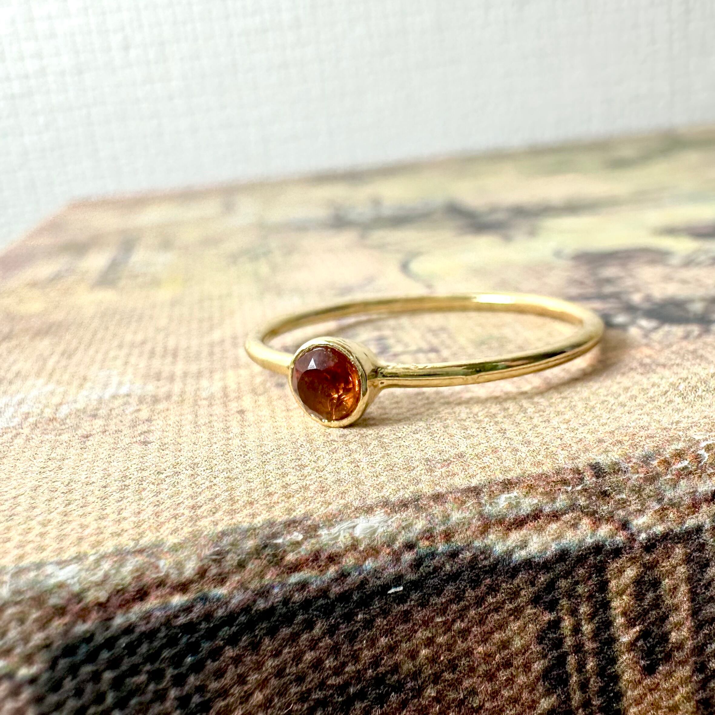 上品で深いオレンジカラーがシンプルで上品なリングに仕上がっています