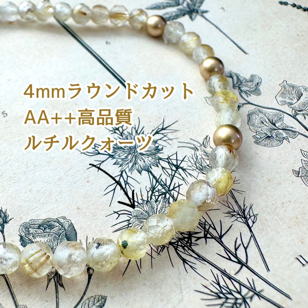 ▶素材:ルチルクォーツ(AA++高品質・約4mmラウンドカット)/樹脂パール(約4mm)