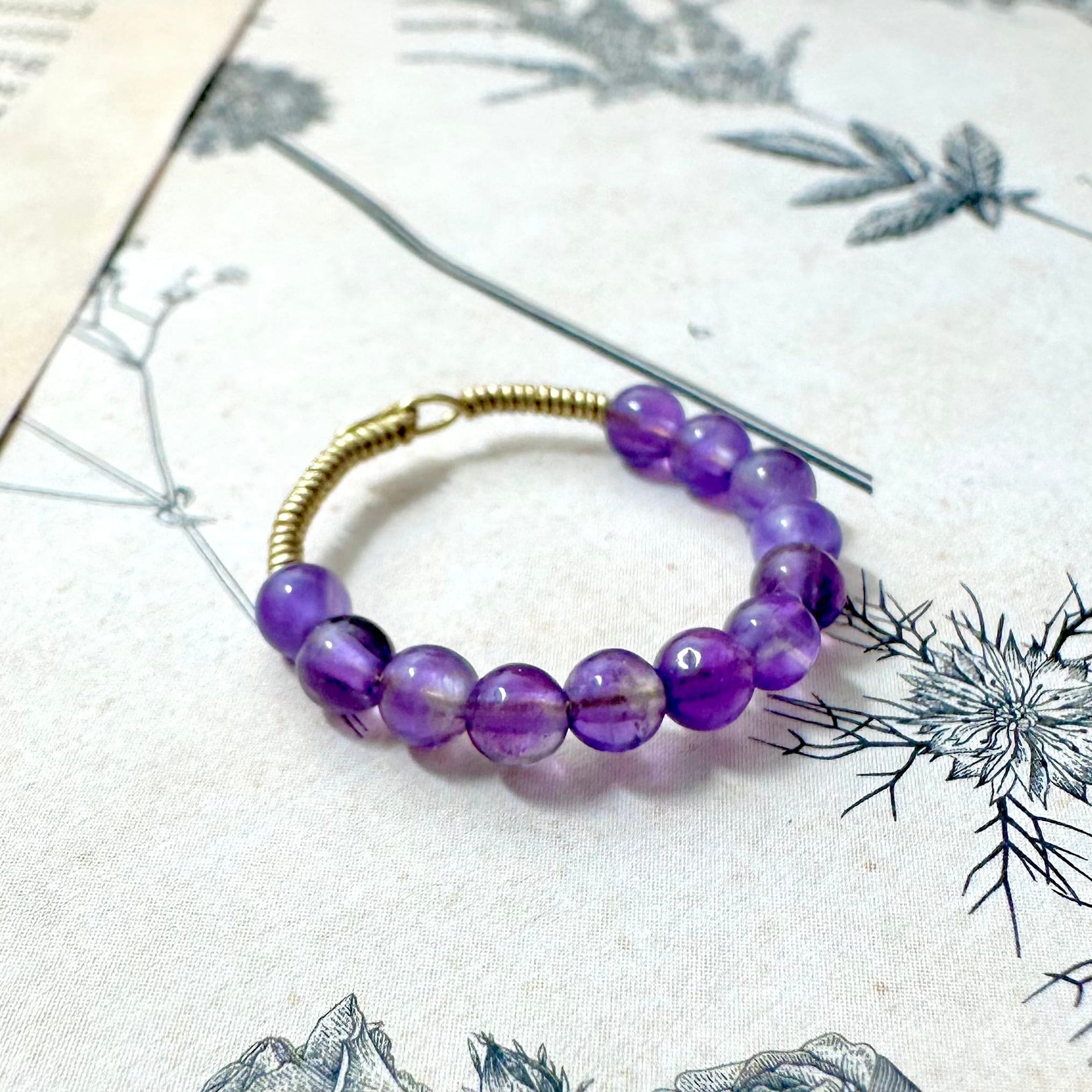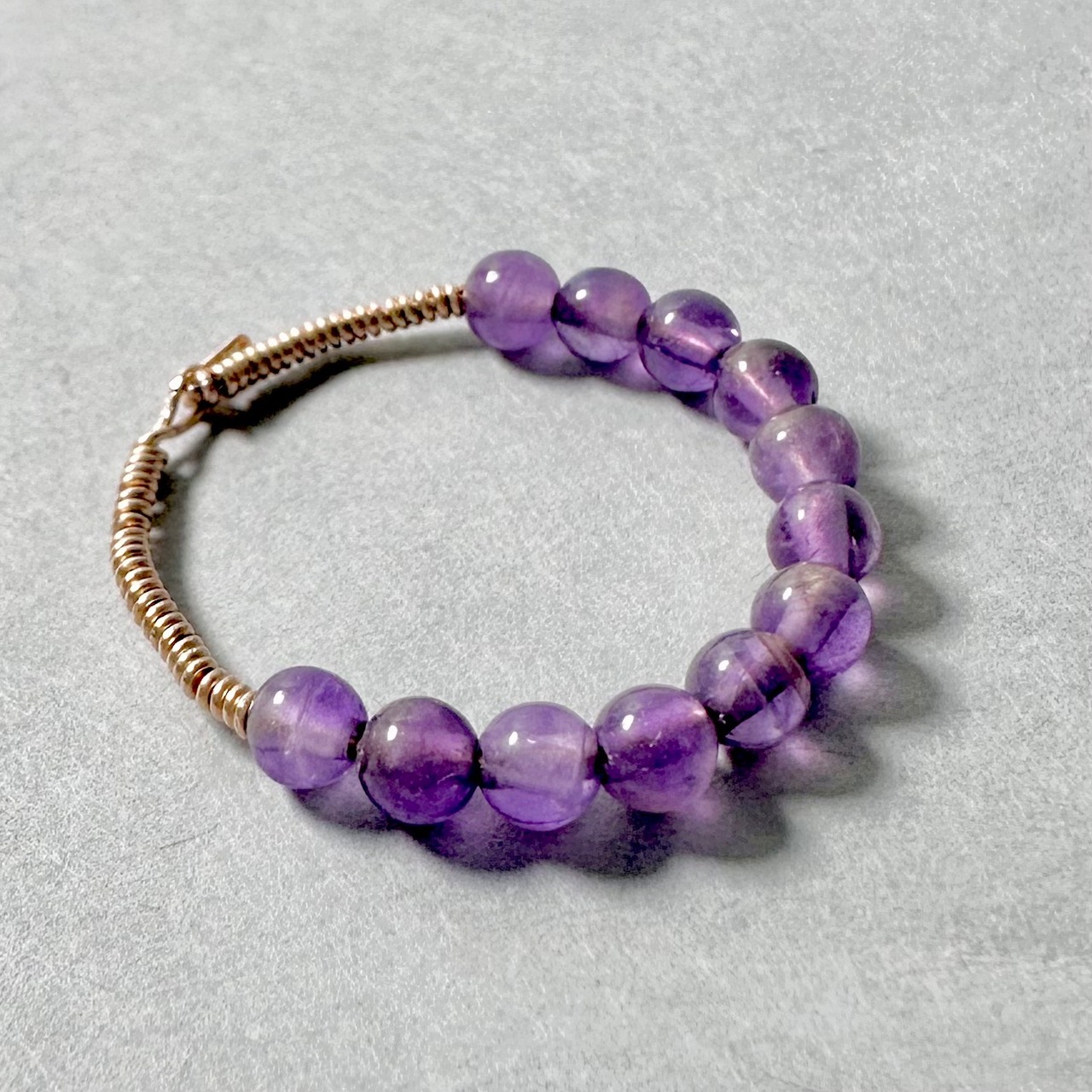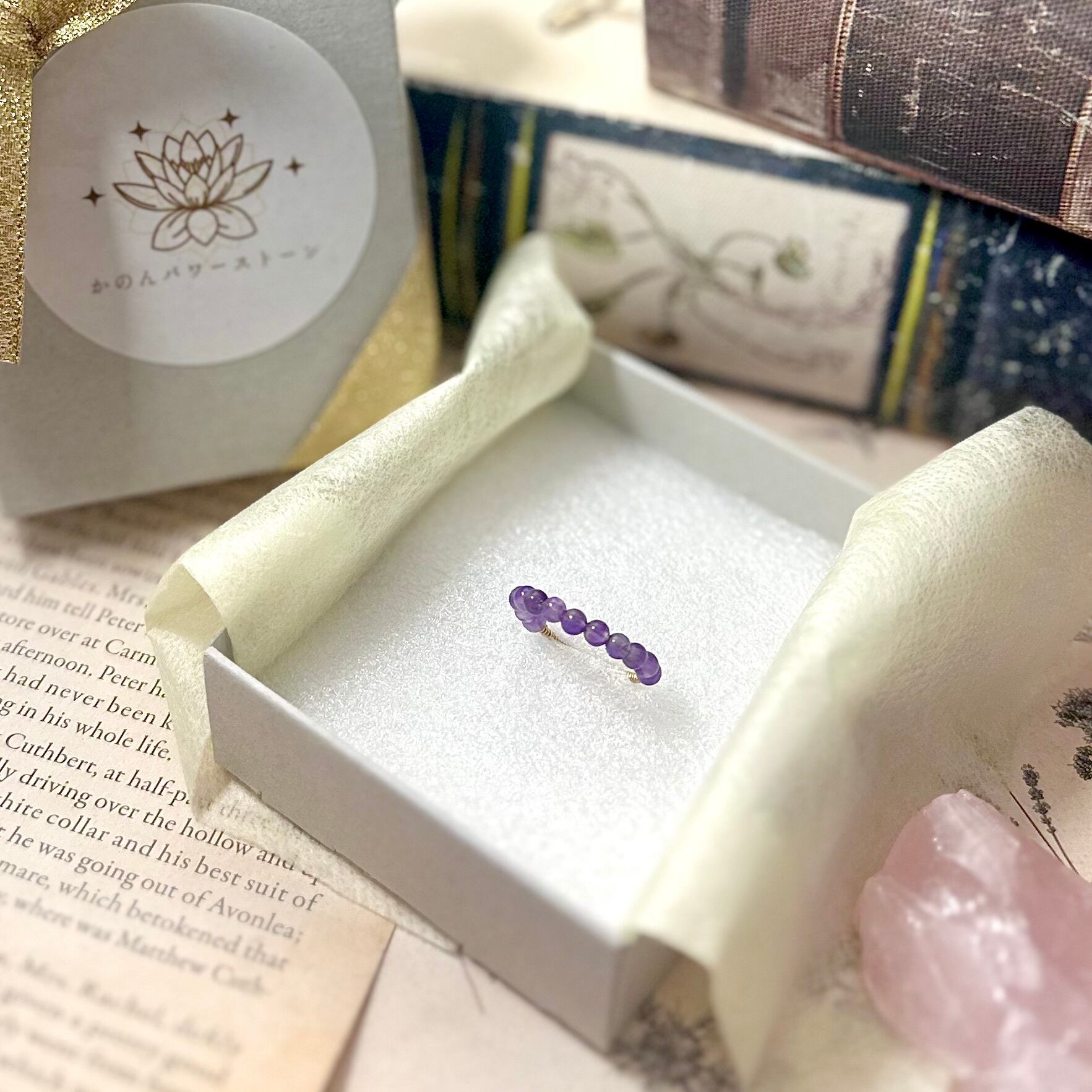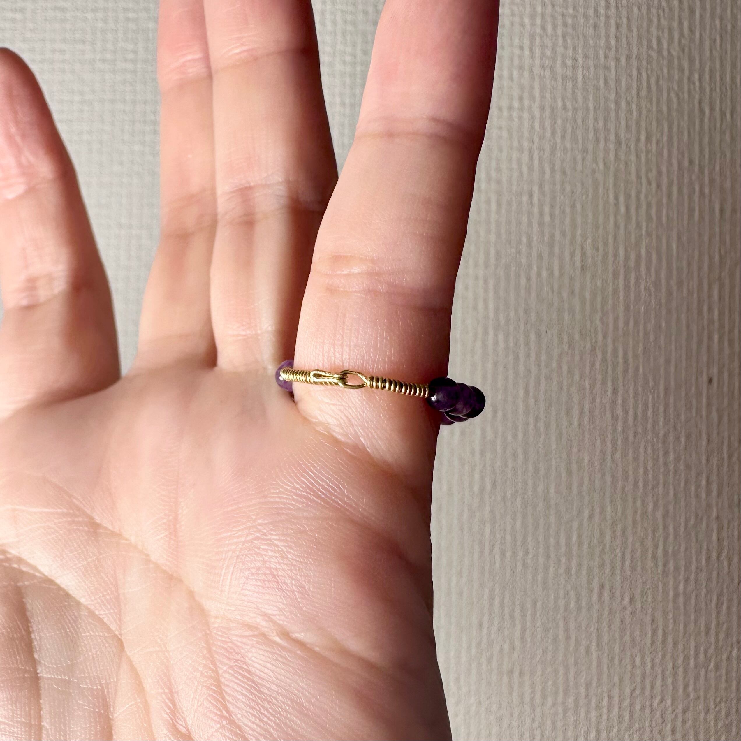こころ落ち着けたい【アメジスト】2月誕生石ワイヤーリング 【選べるサイズ】14kgf~石からのメッセージ付き