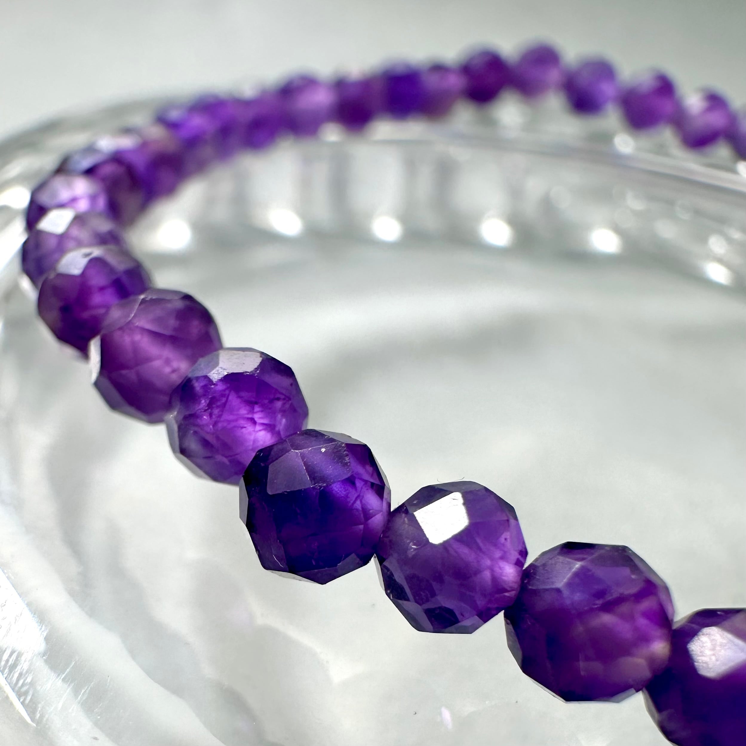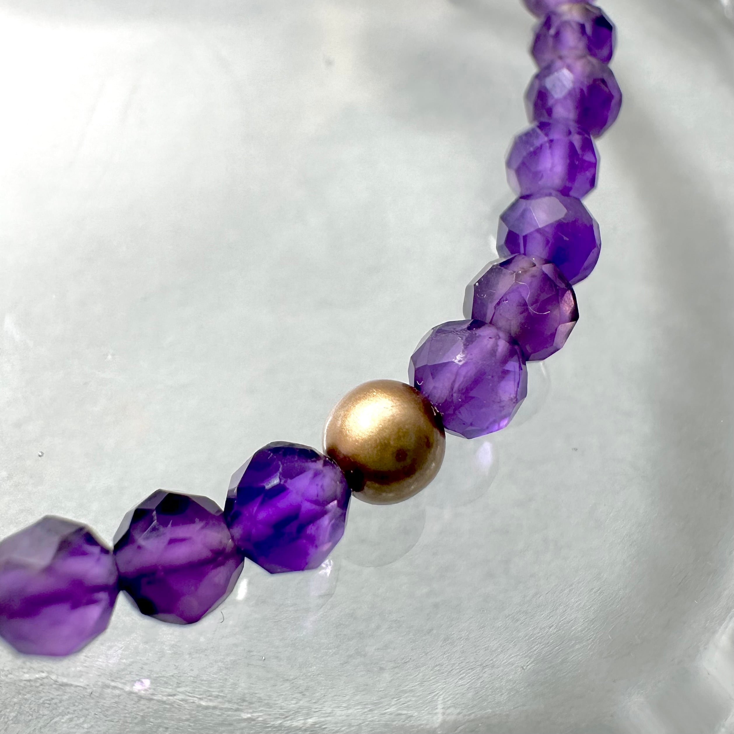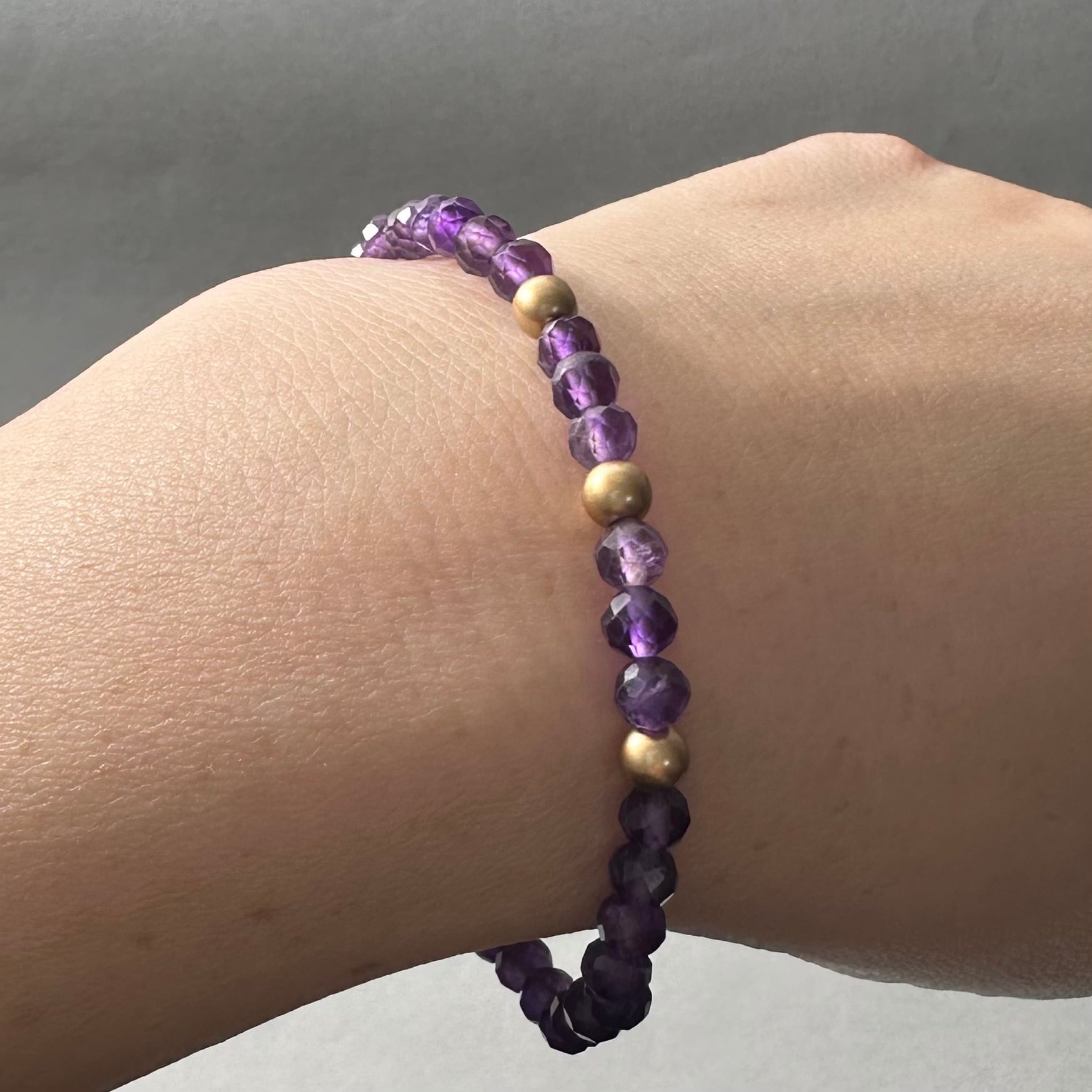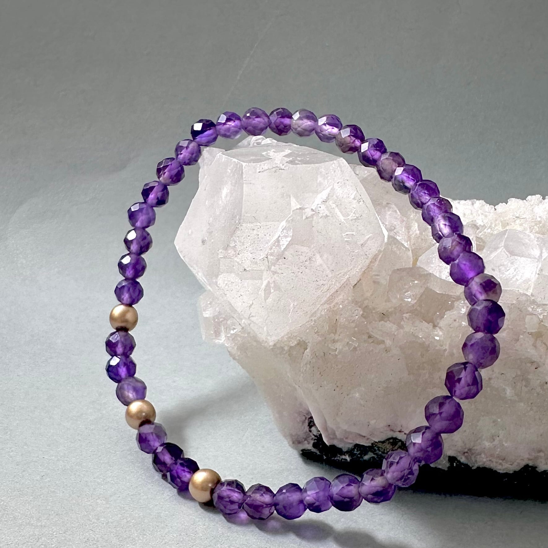 4mmのアメジストを丁寧に連ねた、華奢な一連ブレスレット。