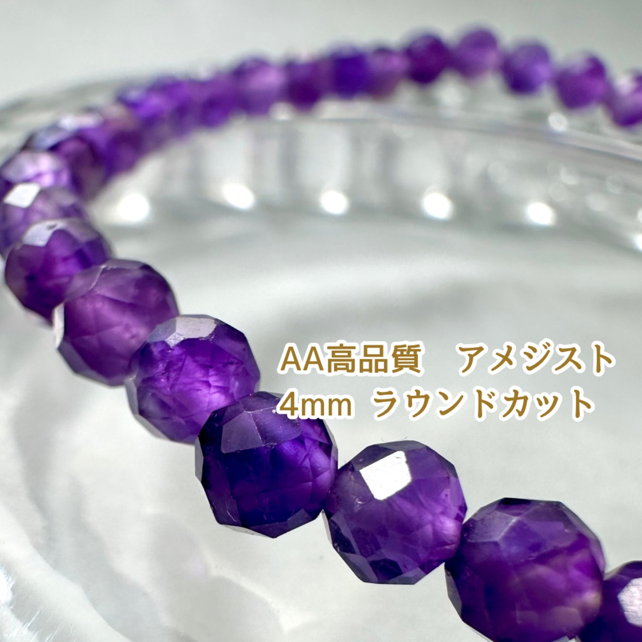 ▶素材:アメジスト(約4mmラウンドカットAA高品質)/樹脂パール(約4mm)