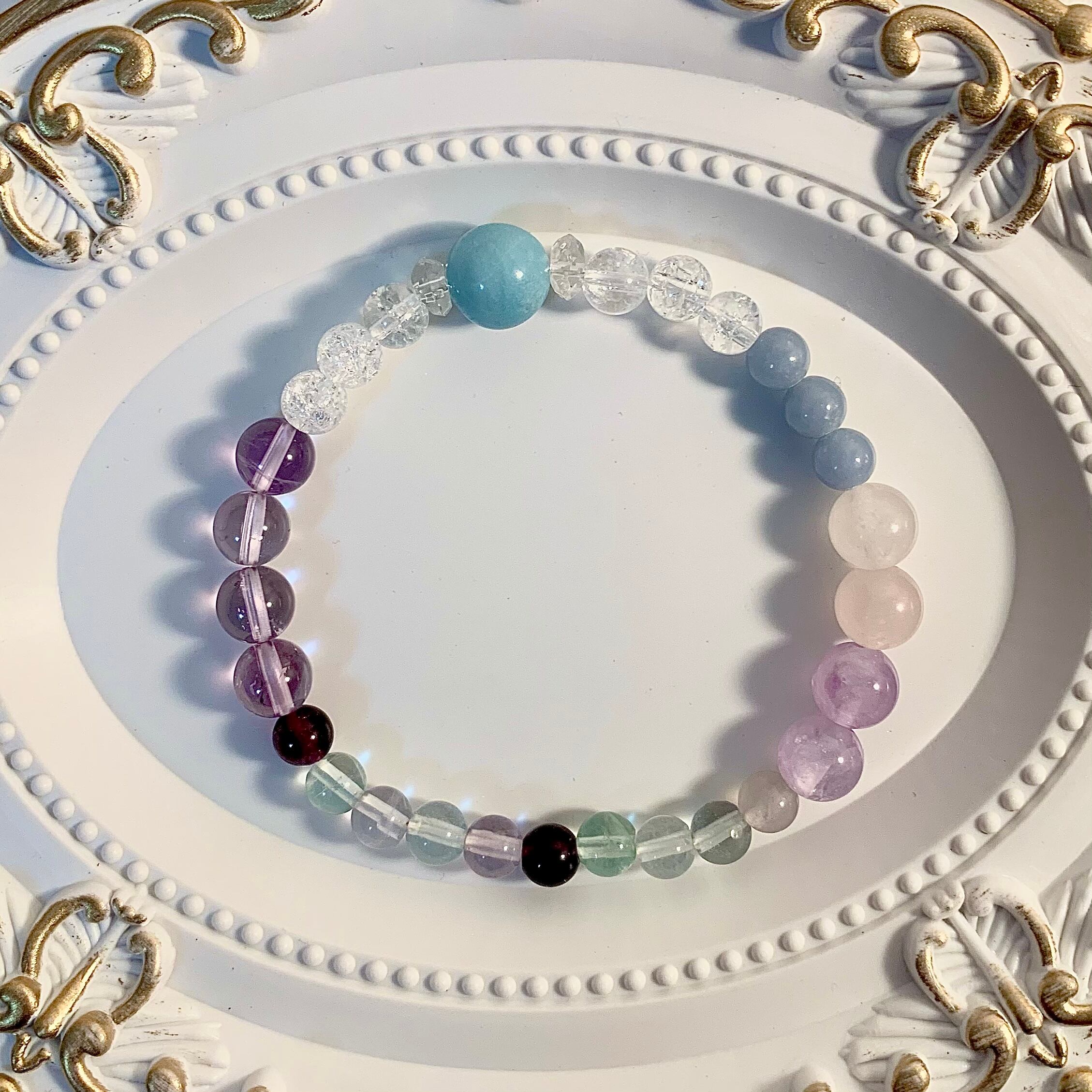 占い付≪パワーストーン≫ブレスレット アマゾナイト 水晶 フローライト ローズクォーツ≪1点物≫2WAYデザイン