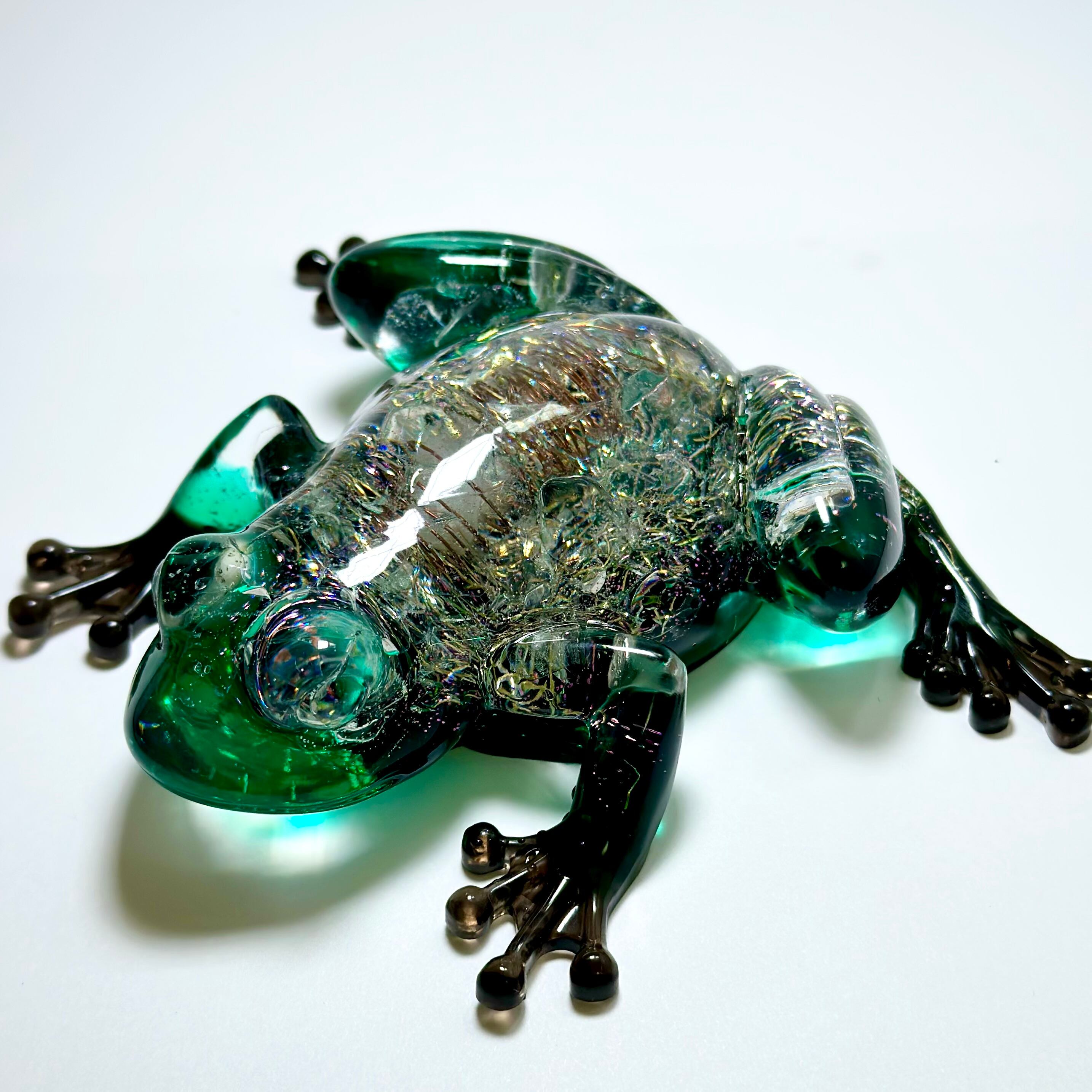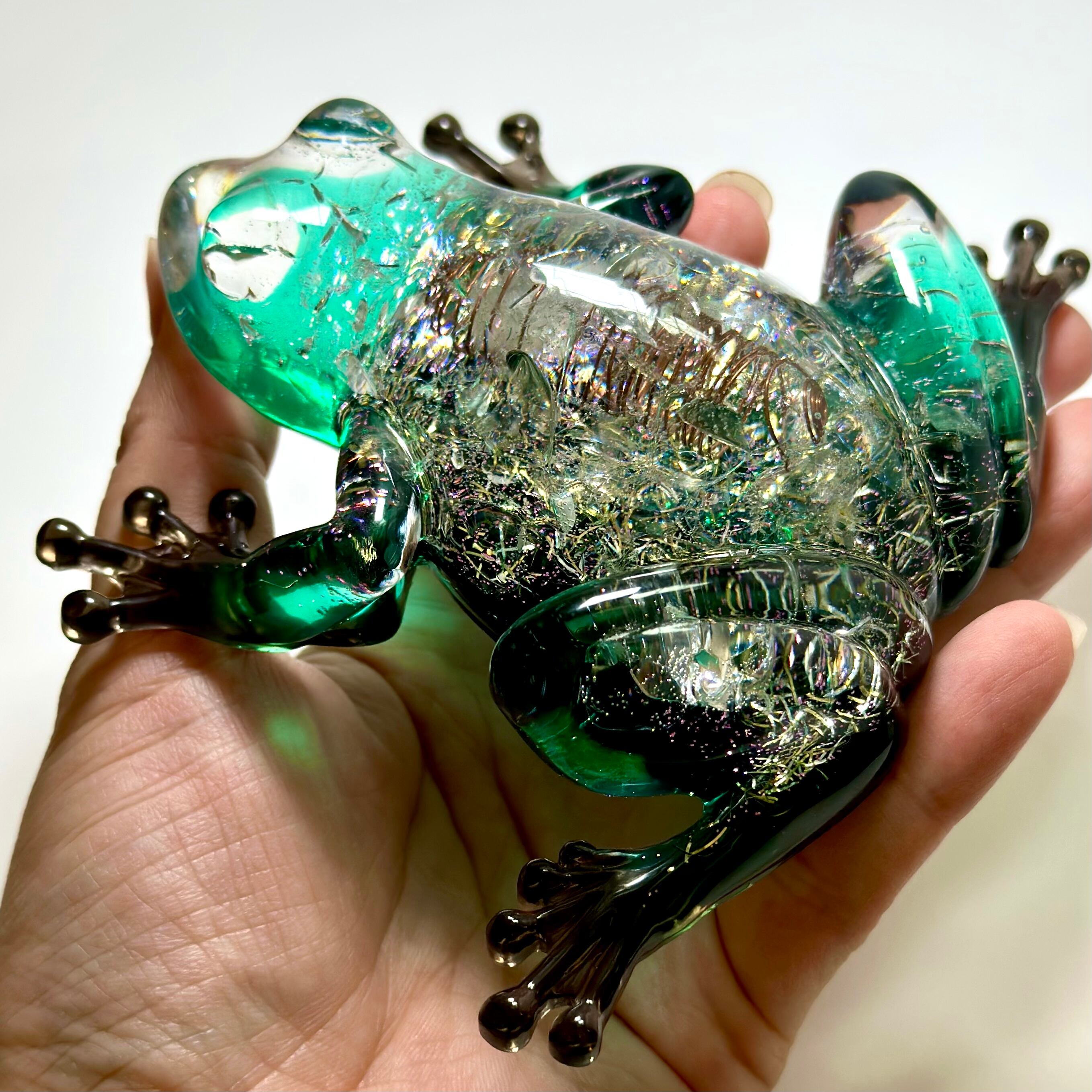 オルゴナイト【カエル】幸運の象徴×グリーン|一点物『置き物』風水〜あなただけのメッセージ付き