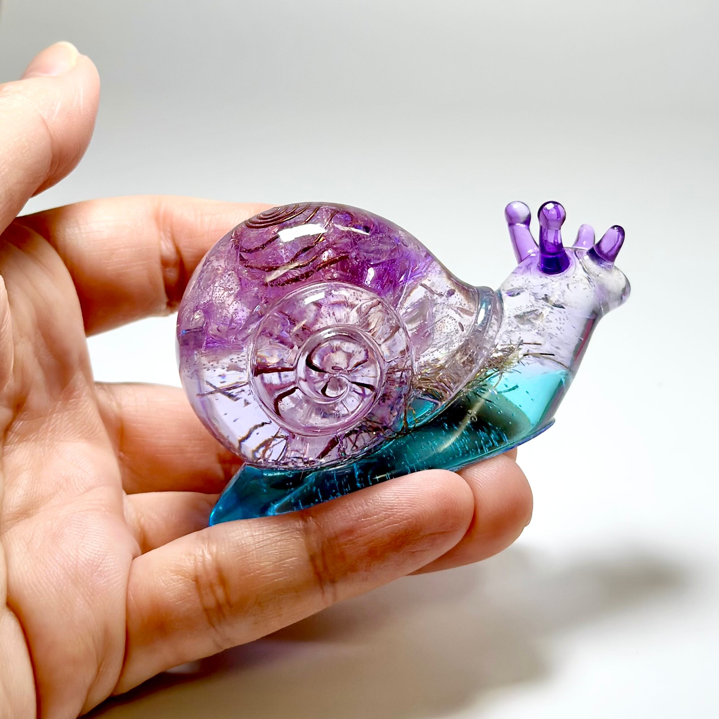 オルゴナイト【かたつむり】幸運を運ぶ|パープル×スカイブルー|一点物『置き物』風水〜あなただけのメッセージ付き