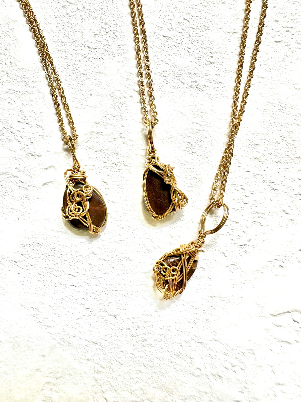 天然石ダブレットストーン<オパール×鉄鉱石>ネックレス10月誕生石[一点物]『個性的真鍮ワイヤー巻き』〜あなただけのメッセージ付き