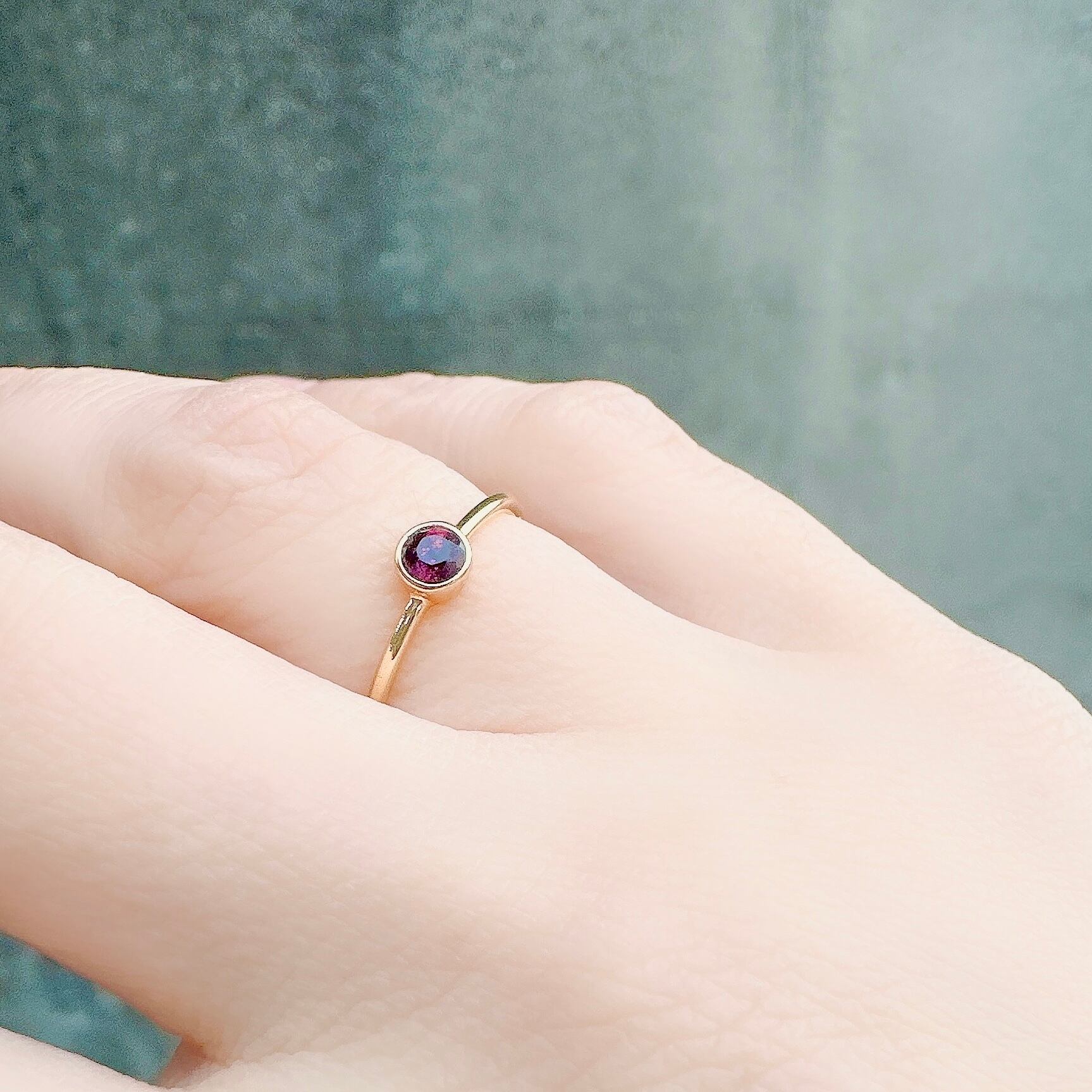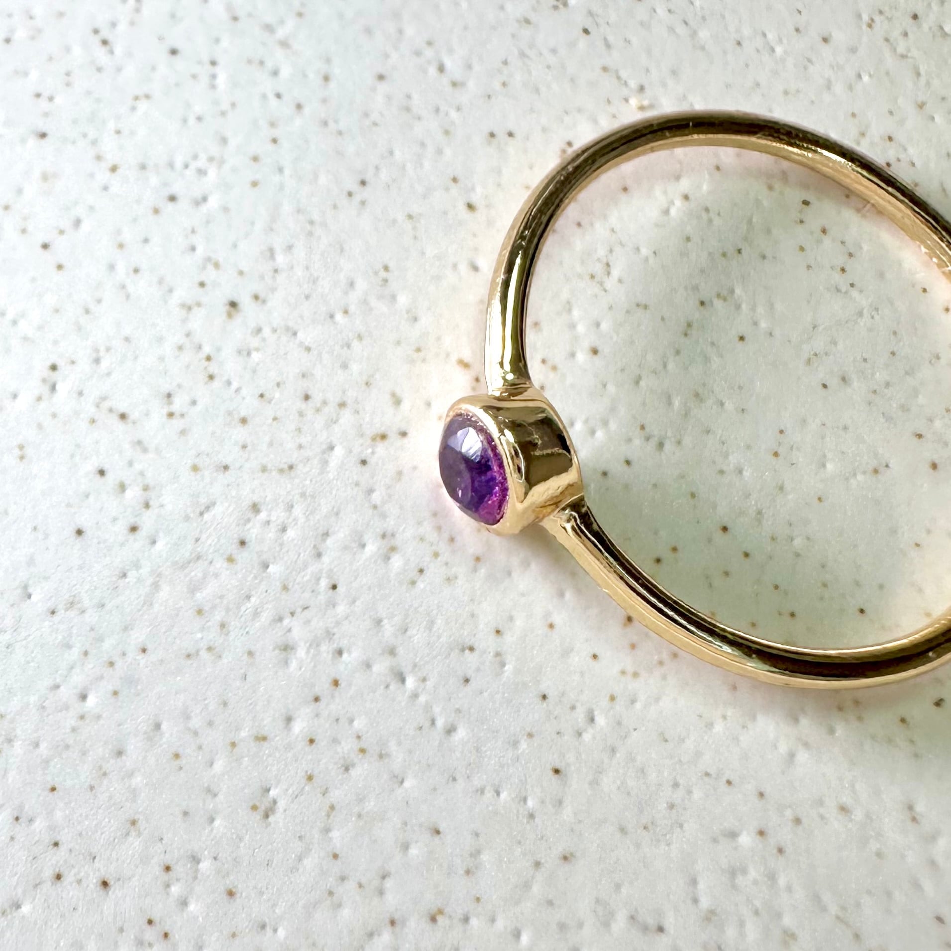 神秘的な紫が内側からそっと輝く宝石質アメジストをあしらった、シンプルで上品なリング。