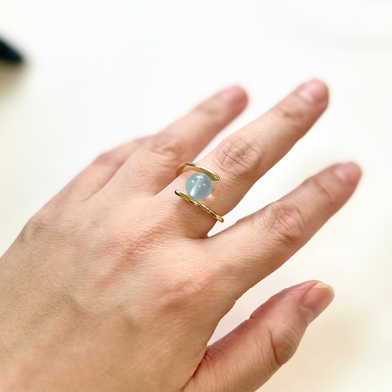 深い癒しの天然石【アクアマリン】高品質の8mmビーズをリング、ネックレスとしてつかえるアクセサリーにしました