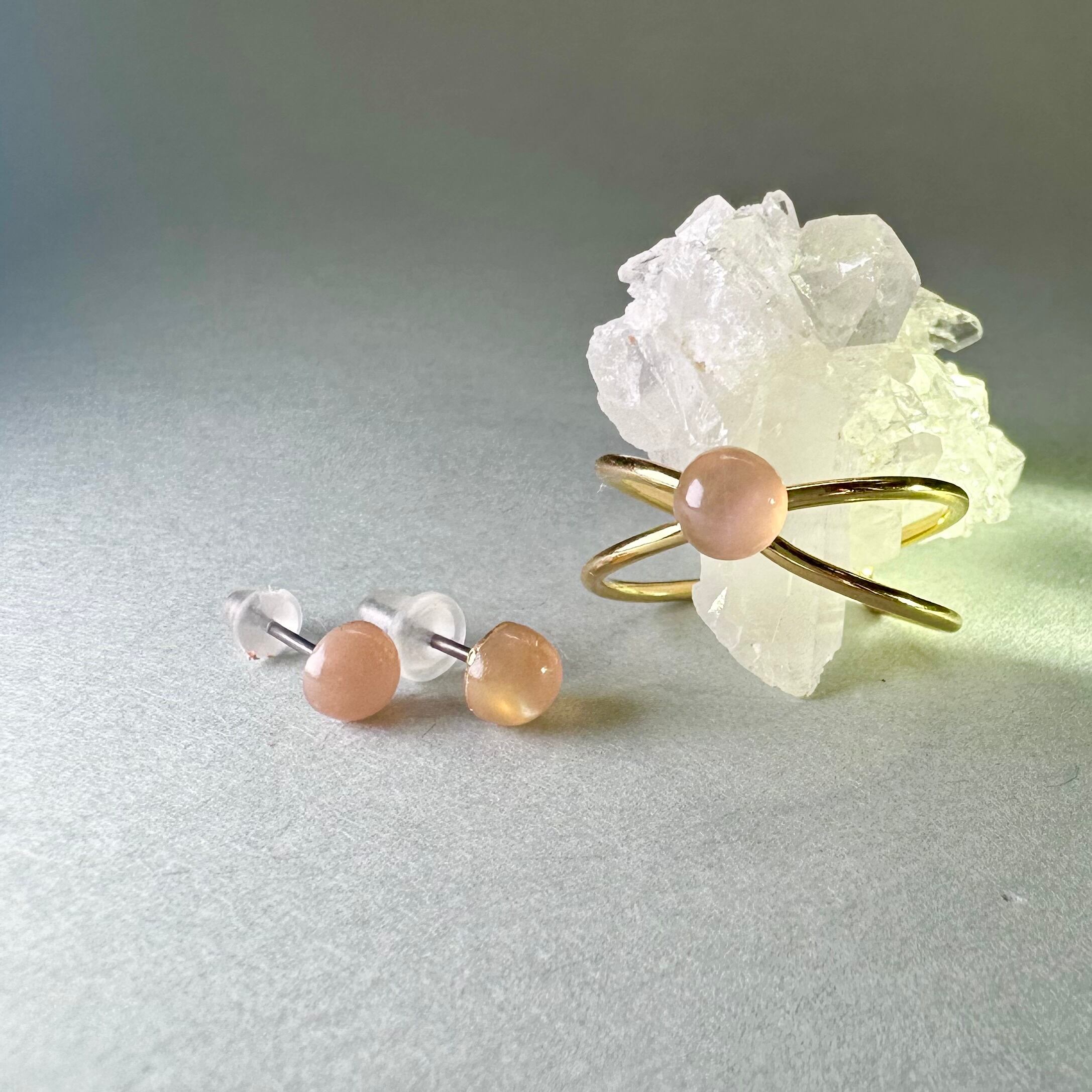 【お買い得】オレンジムーンストーンのピアスとリングのセット