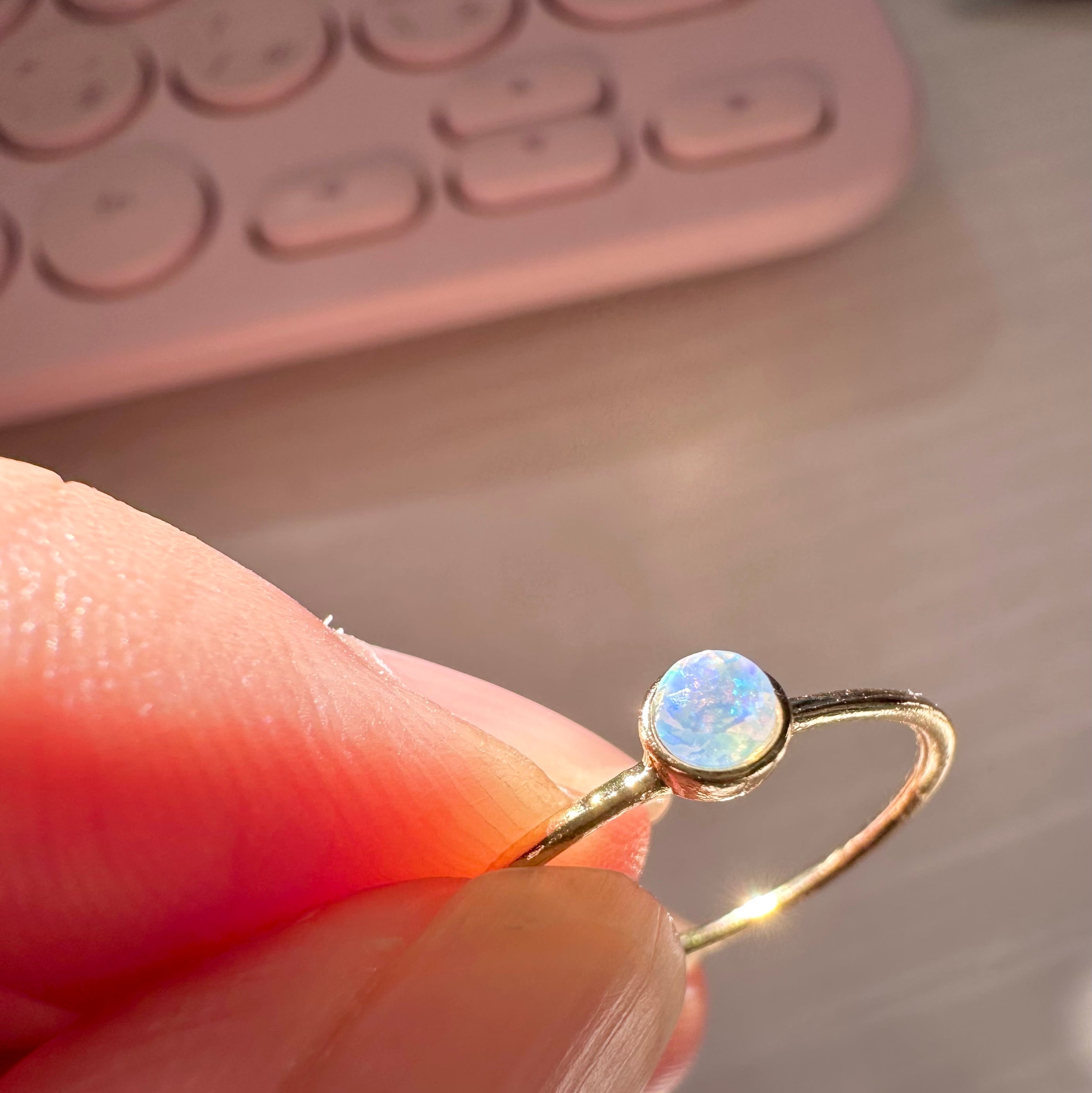 あなたの魅力を映し出す幸運の石 エチオピア産【オパール】宝石質 華奢リング◆宝石質◆10月誕生石〜あなただけのメッセージ付き