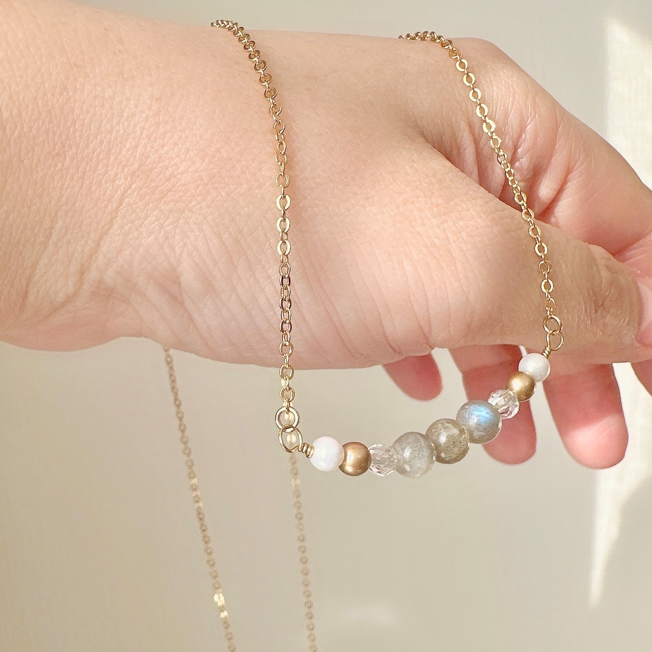 【ネックレスと耳飾りセット】ラブラドライト×水晶×樹脂パール|パワーストーン アクセサリー ピアス イヤリング 〜石からのメッセージつき