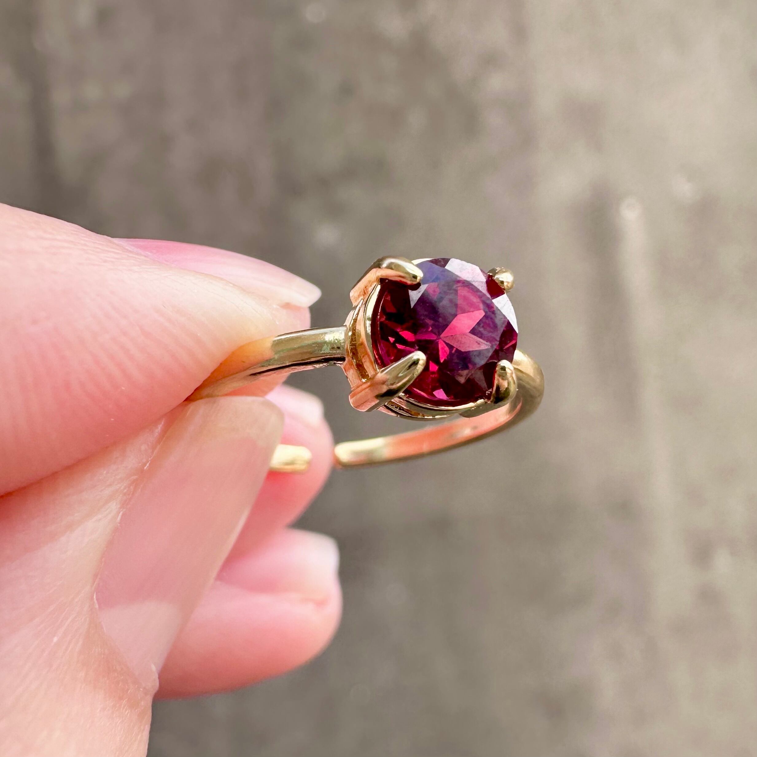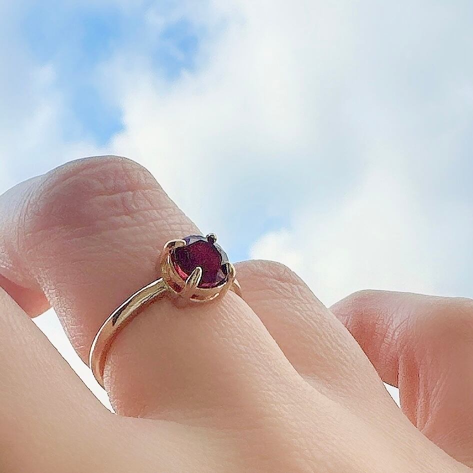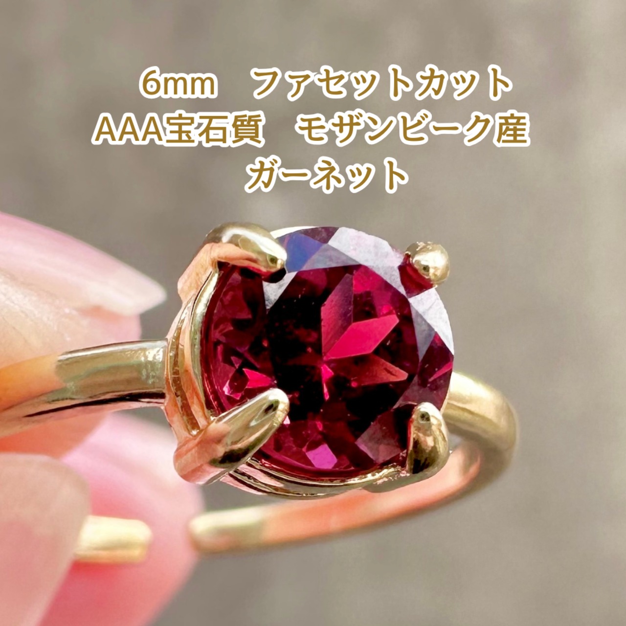 【成功へ導く】宝石質AAA モザンビーク産ガーネット 6mm ファセットカット 一粒リング/真鍮フリーサイズ|1月誕生石~あなただけのメッセージ付き