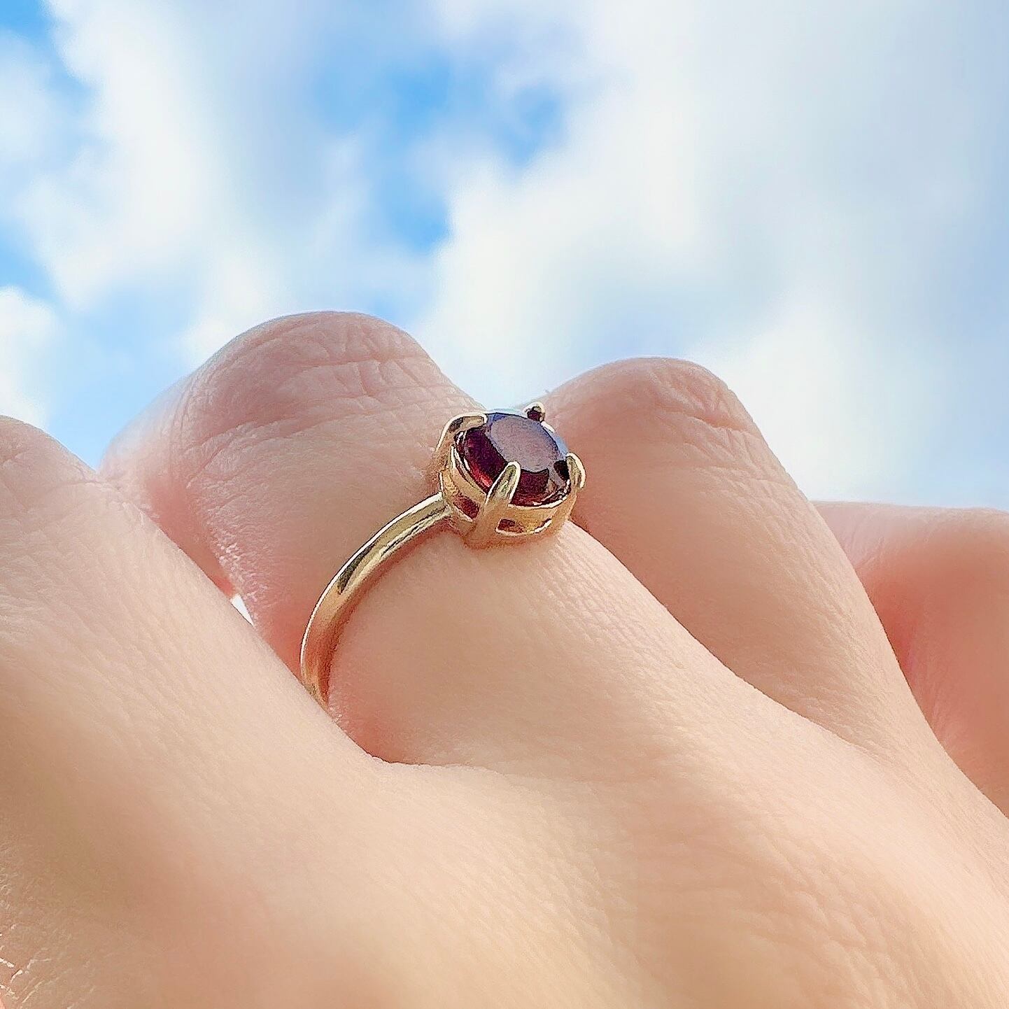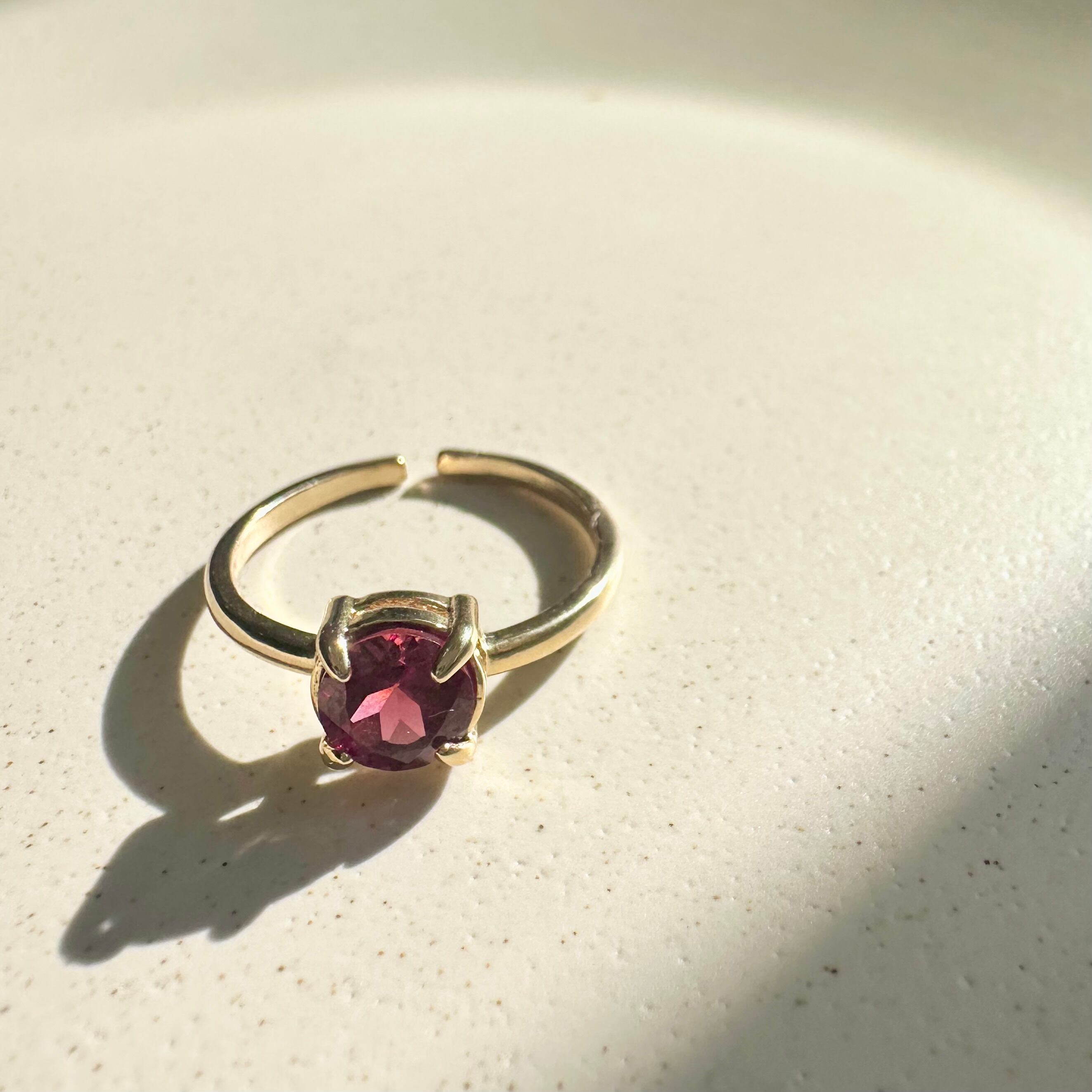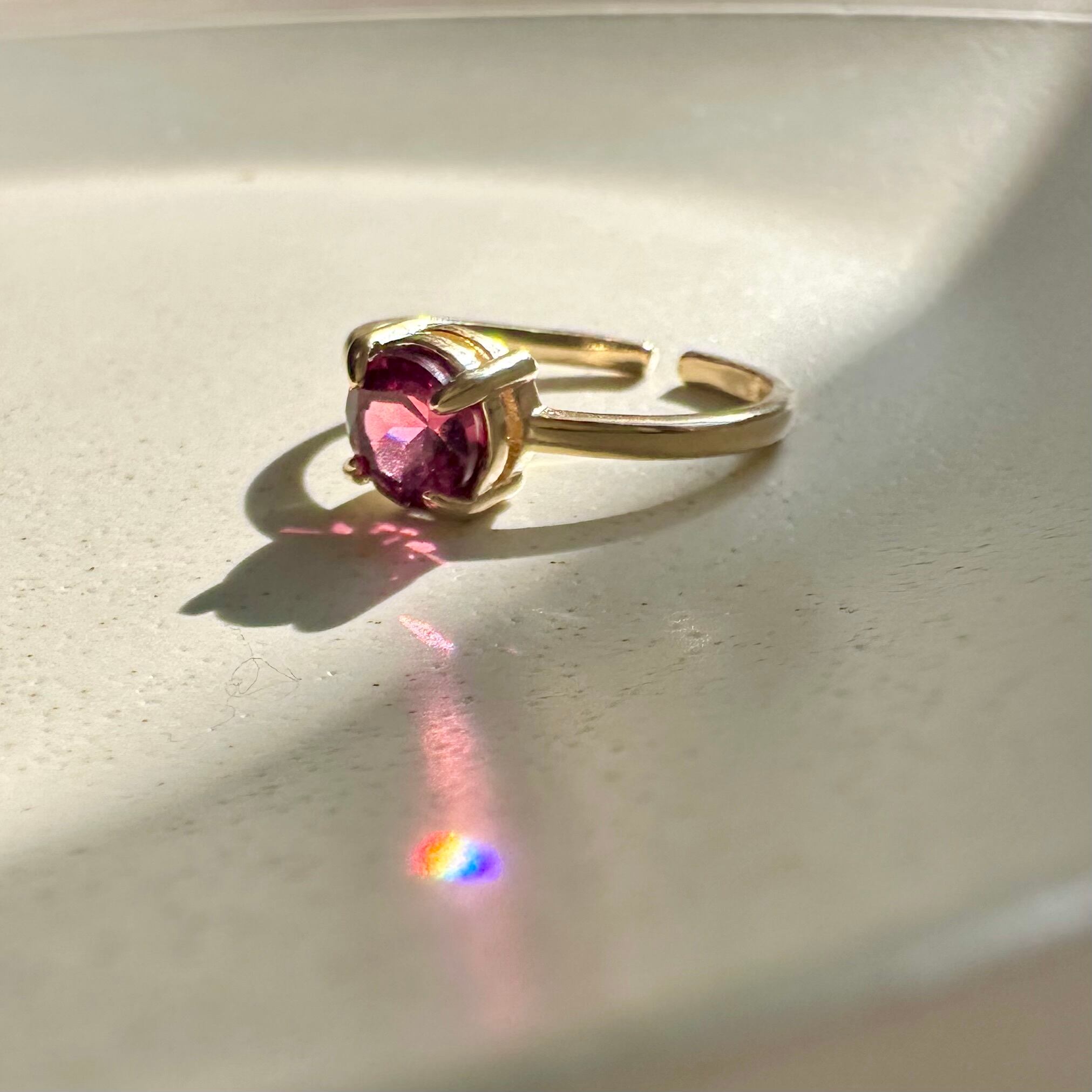 【成功へ導く】宝石質AAA モザンビーク産ガーネット 6mm ファセットカット 一粒リング/真鍮フリーサイズ|1月誕生石~あなただけのメッセージ付き