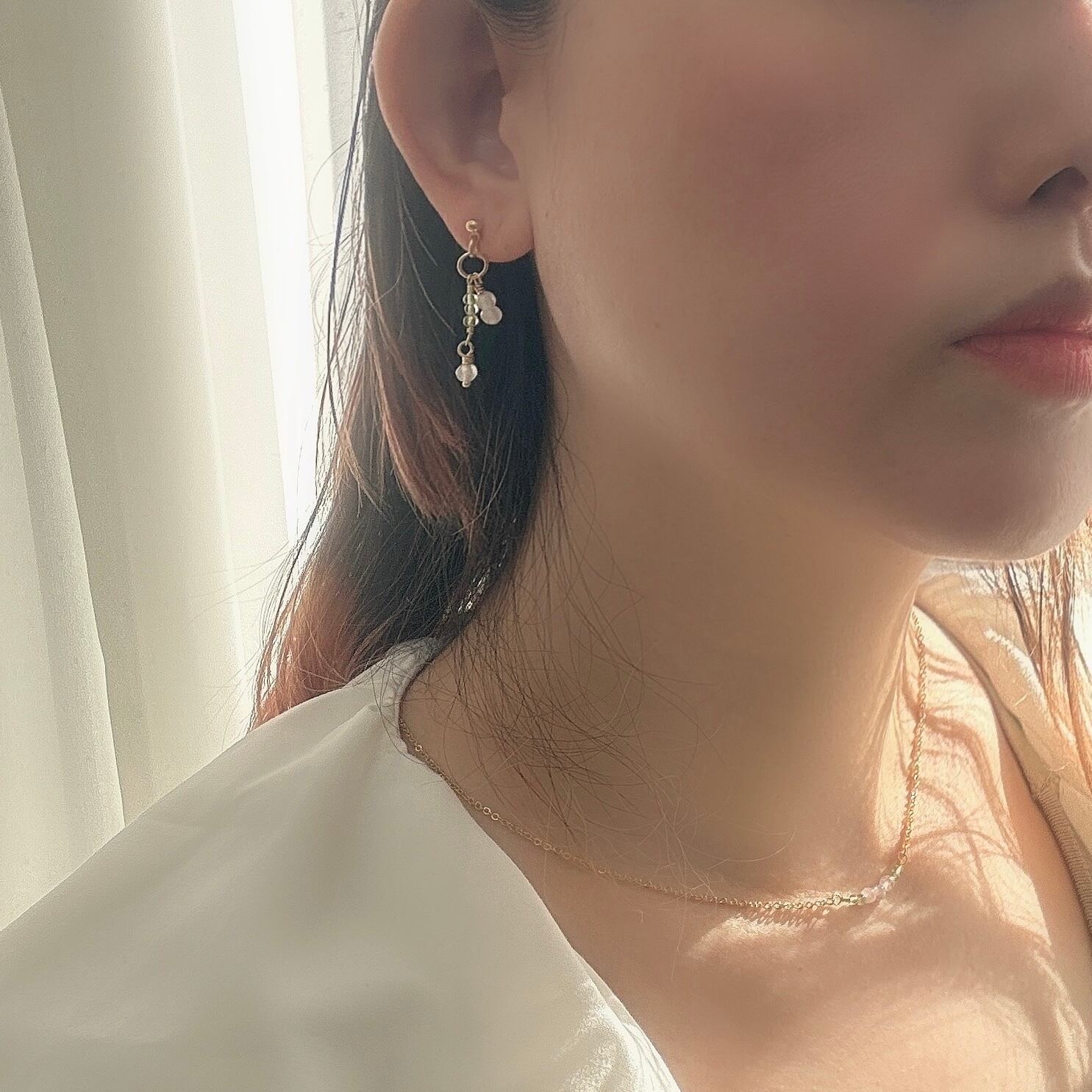 ネックレスとピアス(イヤリング)に仕立て、春を纏うセットにしました。